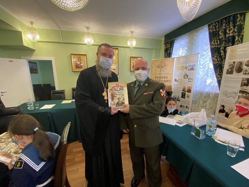 Краеведческо-экологическое общество «Бутово» и Музей морской истории России имени адмирала Ф.Ф. Ушакова (ГБОУ Школа № 1161) в присутствии участников Ушаковских чтений передали в дар создаваемому церковно-краеведческому музею храма святого праведного воина Феодора Ушакова два панно, принадлежавших почетному жителю района Южное Бутово, контр-адмиралу, Владимиру Павловичу Макарову, именем которого назван Навигацкий класс Подворья.