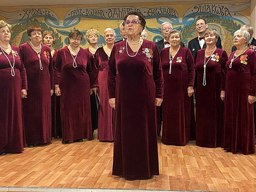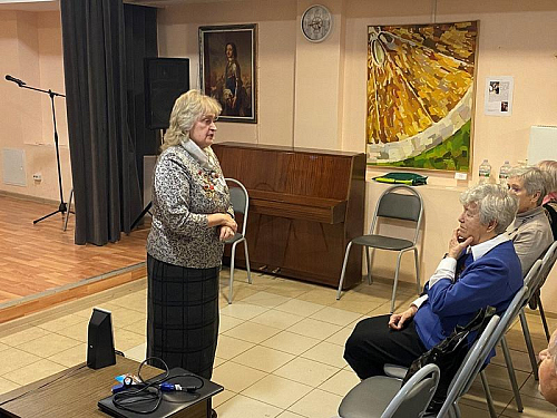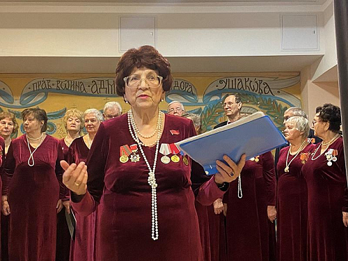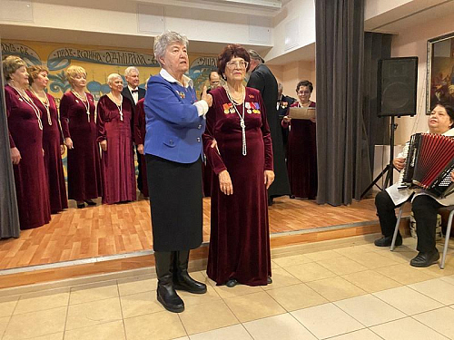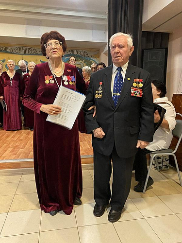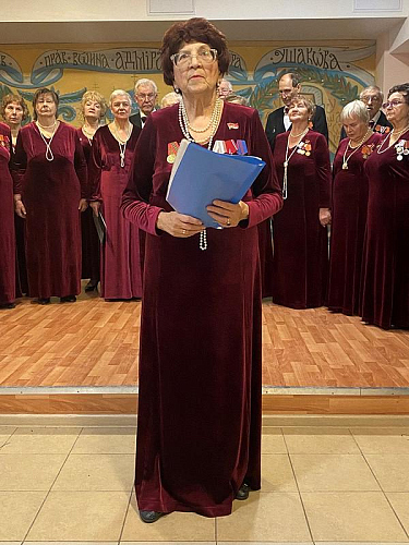 Пенсионеры, труженики школьного образования, с глубоким чувством и настроем исполнили ряд популярных песен о Городе-герое Ленинграде, подвиге его жителей, борьбе и труде, защите Родины, мужестве и непоколебимой вере в Победу.