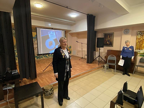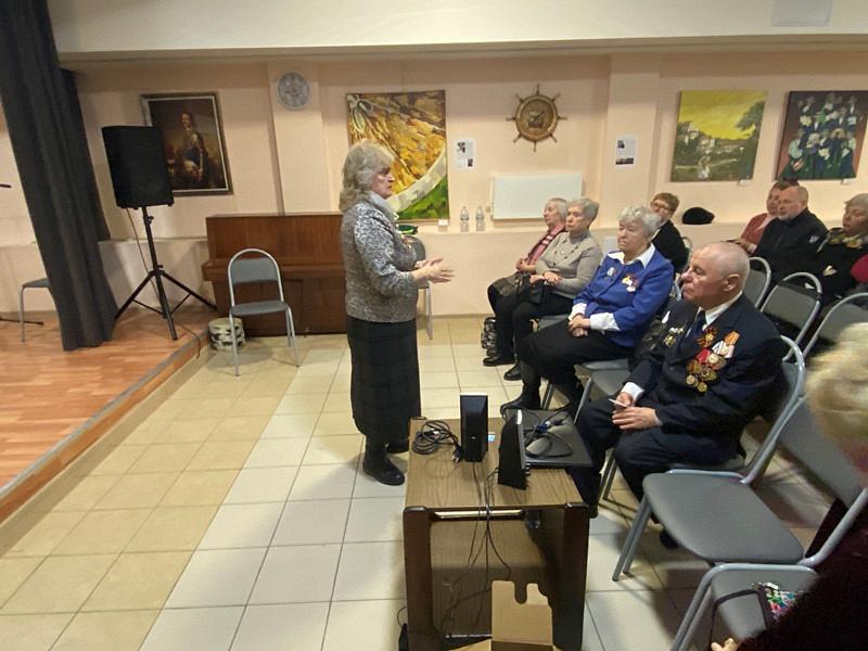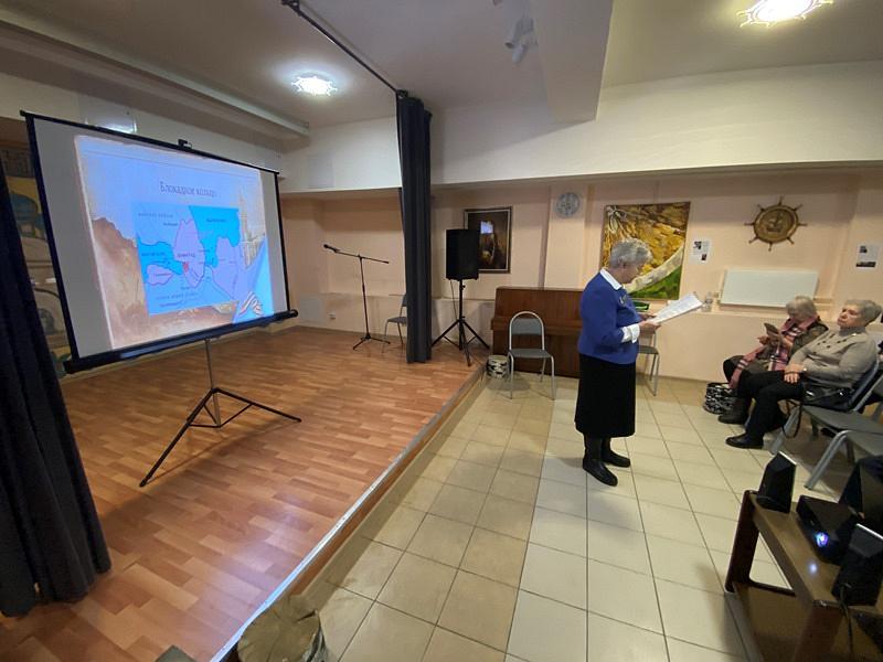 Далее выступила Заместитель председателя Совета ветеранов района Южное Бутово Слесуратина Эльвира Николаевна, которая рассказала о событиях блокады Ленинграда и его освобождении. Ее рассказ сопровождался показом фотоматериалов.