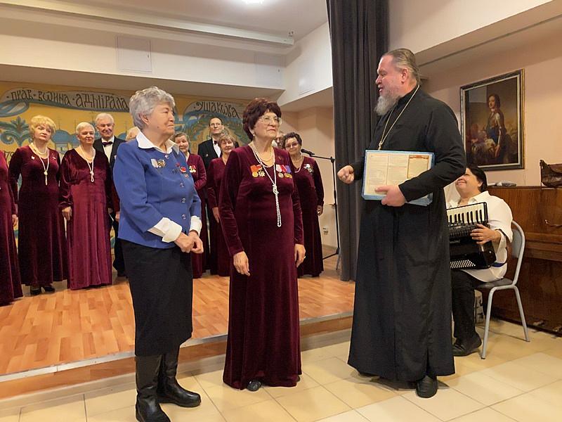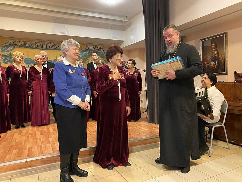 После концерта со словом благодарности выступил настоятель храма святого праведного воина Феодора Ушакова игумен Дамиан (Залетов). Настоятель пожелал хору дальнейших творческих успехов и всем участникам здоровья и крепости духа. На память о мероприятии настоятель подарил хористам календарь на 2023 год про адмирала Ушакова, а всем присутствующим карманные календари на 2023 гол к 10-летию Патриаршего подворья.