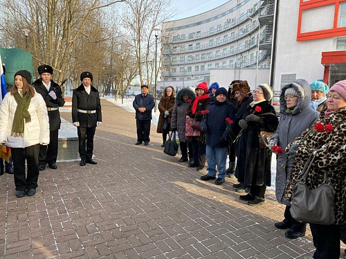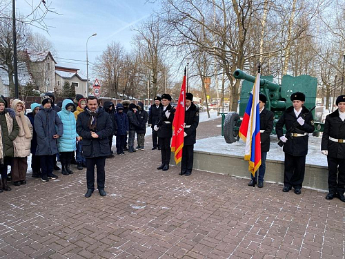 Мероприятие завершилось возложением цветов к памятнику - военной зенитной пушке.