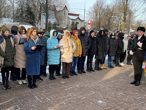 В мероприятии приняли участие кадеты-юнармейцы, учащиеся школы 1161 с флагами России и Военно-Морского Флота. Флаговая группа "Школа № 1161" достойно представили Юнармию ЮЗАО. Ребята, морские кадеты, бодро промаршировали около памятника защитникам Москвы. Школьников-кадетов сопровождал капитан II ранга Андрей Юрьевич Кострюков, наставник морского кадетского класса школы № 1161.