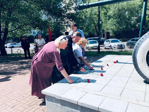 Со словом памяти выступила Эльвира Николаевна Слесуратина, которая поделилась горькими воспоминаниями о войне и призвала помнить свою историю и ее героев. Эльвира Николаевна прочитала трогательные стихи о начале войны.