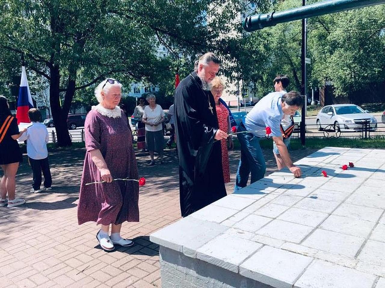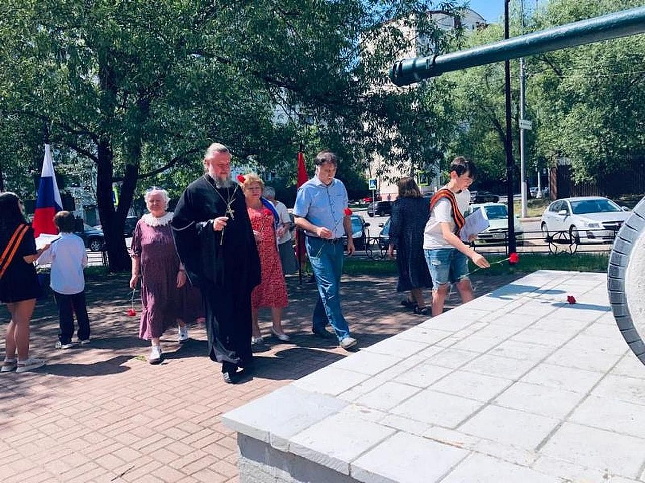 С призывом к исторической памяти и объективности выступил игумен Дамиан, который напомнил о важности формирования высоты духа молодежи и всех жителей России, чтобы мужественно и стойко противостоять злу, не только в прошедшие годы, но и теперь. Также настоятель передал всем участникам мероприятия приветствие от Героя России, лётчика-космонавта, депутата Государственной Думы Федерального собрания Российской Федерации Романенко Романа Юрьевича и депутата Мосгордумы Гусевой Людмилы Ивановны.