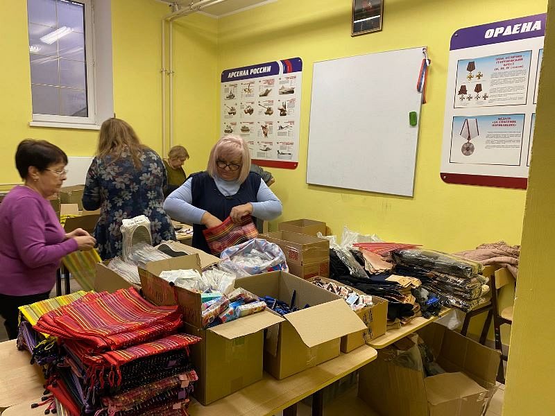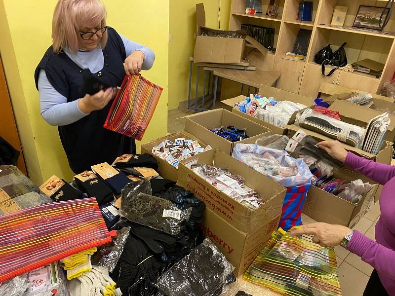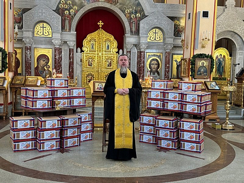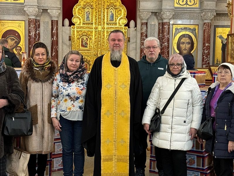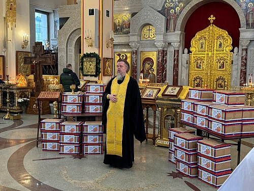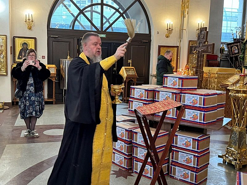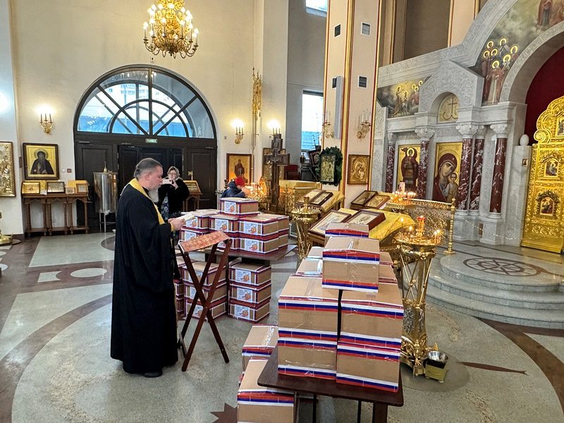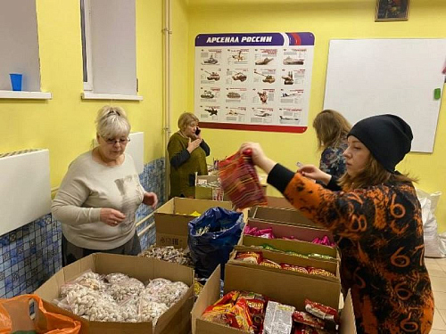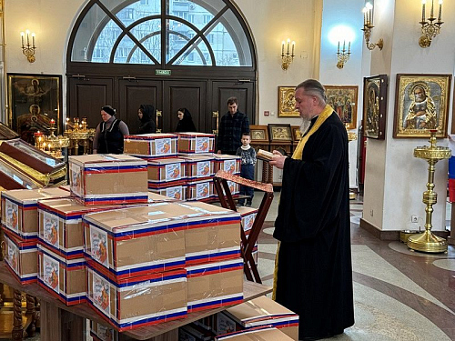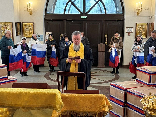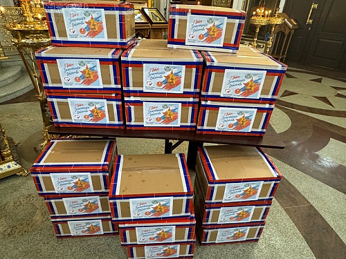 Перед молитвой они собрались в доме причта Патриаршего подворья и дружно собрали посылки, куда включили необходимые вещи и продукты для воинов, в том числе и по их просьбе и заказу. Работами руководила организатор волонтерской работы Ирина Игошина.