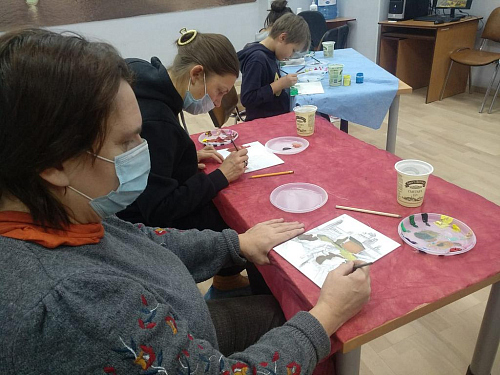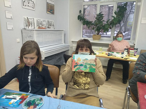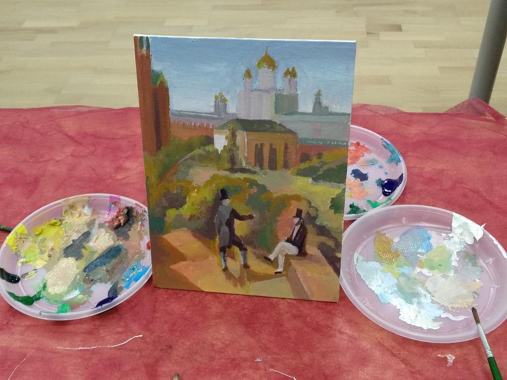 Затем Мария Вальдес провела мастер-класс по созданию картины акриловыми красками на тему:«Москва рубежа XVIII-XIX веков». Через произведение своих рисунков участники смогли окунуться в атмосферу той эпохи и воспроизвести на полотне образы, сцены из жизни и архитектуру.