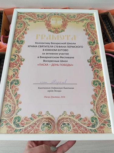 25 апреля 2026 года воспитанники воскресной школы храма Святителя Стефана Пермского в Южном Бутово приняли участие в ежегодном Пасхальном фестивале воскресных школ Юго-западного викариатства «Пасха Христова 2026», который прошел в КДЦ «Атлант».