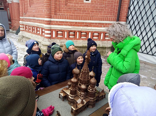 11 февраля 2023 года воспитанники Воскресной школы храма священномученика Василия, протоиерея Московского, в Конькове вместе со своими родителями и педагогами Юлией Викторовной Марковой и Светланой Юрьевной Ратиновой с экскурсией посетили одну из главных святынь города Москвы, символ православной Руси - собор Василия Блаженного на Красной площади.