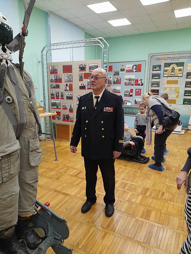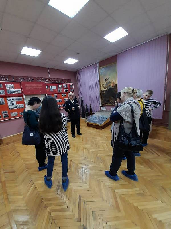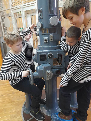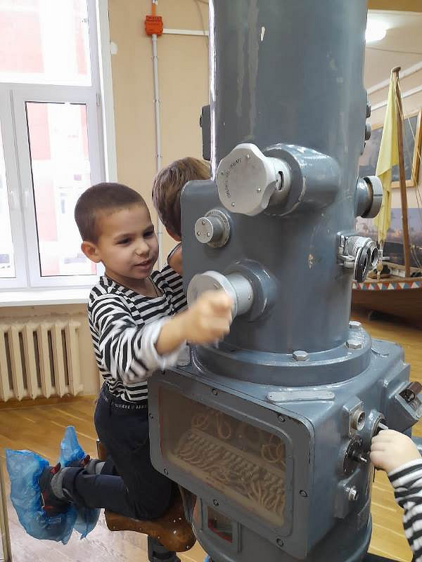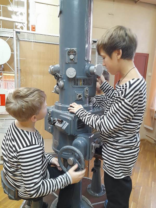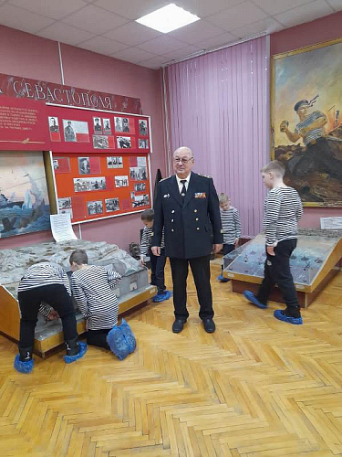 С рассказами об истории тельняшки, жизни и службе военных моряков, а также об экспозициях Музея по его залам детей провел член Совета ветеранов Черноморского флота капитан 1 ранга Александр Яковлев. Ребята могли не только послушать или посмотреть экспонаты музея, но и с интересом потрогать многие удивительные экспонаты, настоящие детали и механизмы морских судов.