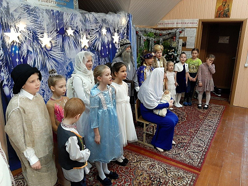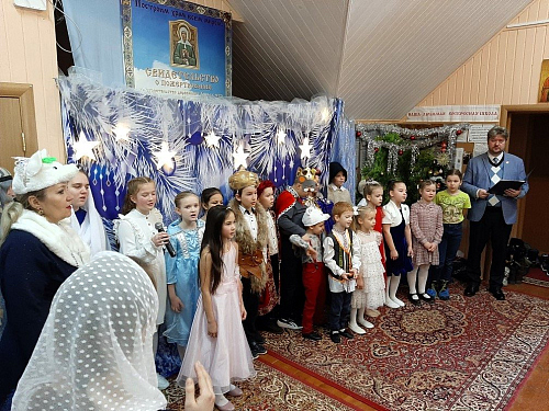 Самые маленькие участники торжества донесли до зрителей важную мысль, что если герои сказки совершают добрые поступки, то даже из мышей они могут превратиться в самых настоящих принцев и принцесс. Ребята исполнили песни и колядки, рассказали стихи, прославляющие родившегося Богомладенца. Даже Вифлеемская звезда ожила, она мерцала в сказочном танце снежинок, а ещё обратилась ко всем со словами: