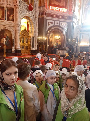 Святейший Патриарх Московский и всея Руси Кирилл возглавил богослужение в кафедральном соборном Храме Христа Спасителя. В качестве молящихся, поющих и прислуживающих в алтаре участвовали дети отроческого возраста.