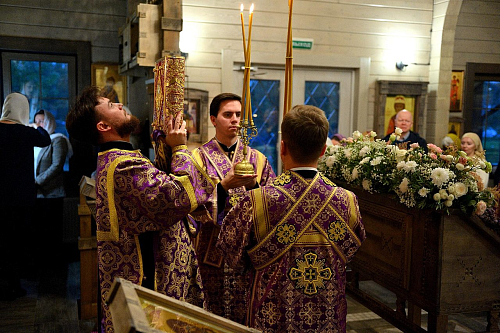 27 сентября 2025 года, в канун Воскресного дня, Неделя 16-я по Пятидесятнице, по Воздвижении, храм Святых Царственных Страстотерпцев в Ясеневе, наполнился молитвенным настроением. Всенощное бдение возглавил Епископ Раменский Алексий, викарий Патриарха Московского и управляющий Юго-Западным викариатством. Его Преосвященству сослужил настоятель храма, иерей Димитрий Бабурин, иерей Самуил Мнацаквнов и диакон Константин Бабак, а богослужебные песнопения исполнил местный хор.