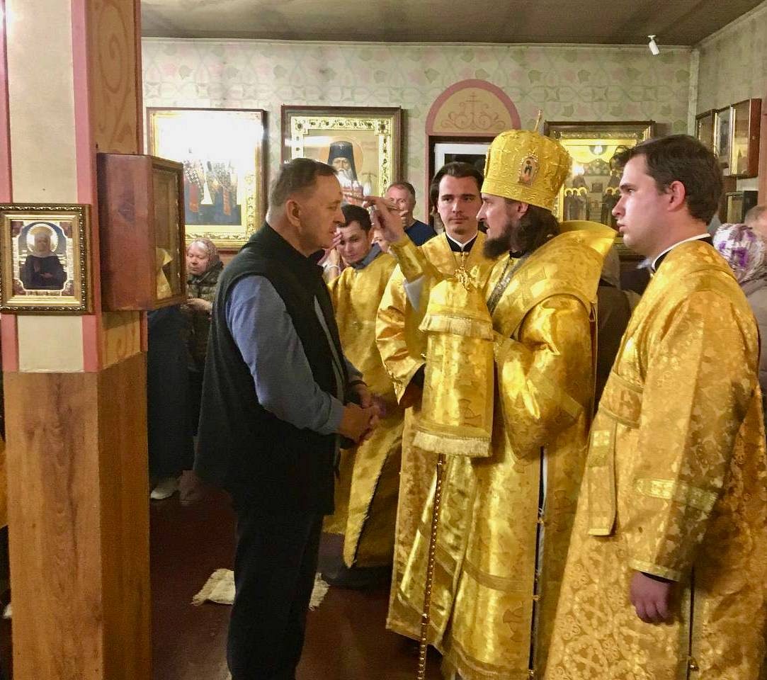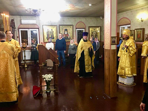 По окончании Всенощного бдения настоятель храма иерей Игорь Шаров от лица всех прихожан выразил признательность Владыке Алексию за посещение храма и архиерейское богослужение.