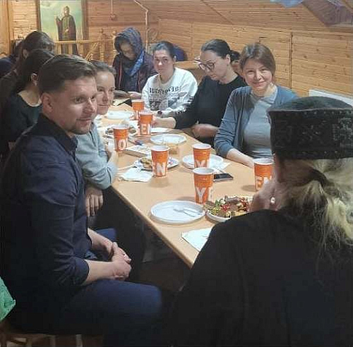 30 марта прошла уютная встреча на втором этаже воскресной школы за чашкой чая «Молодежного клуба» прихода храма в честь иконы Божьей Матери «Отрада и Утешение» на Каховке и настоятеля храма иерея Александра Мелина.