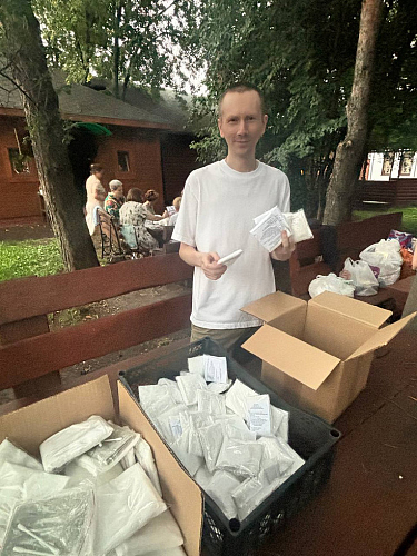 1 августа 2025 года в день памяти преподобного Серафима Саровского в храме Всех преподобных отцев Киево-Печерских состоялась встреча "Помощь ближним" на которой были подготовлены к отправке изготовленные ранее 780 комплектов сухого душа, упакованы чай, кофе, сухое питание и сладости, принесенные прихожанами храма, а так же карманные молитвословы.