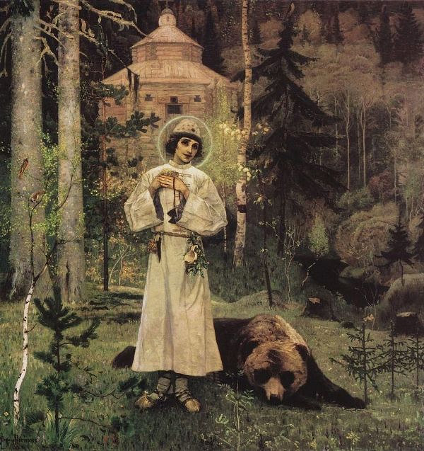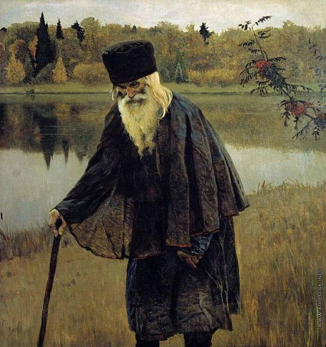 В 1889 году Нестеров пишеткартину «Пустынник». Эта работа была куплена Павлом Третьяковым еще до ее показа на XVII Передвижной выставке. Самобытность и мастерство, аскетизм и выразительность, гармония и сила соединились в единое целое в этом произведении. «Мой старичок открыл мне какие-то тайны своего жития. Он вел со мной беседы, открывал мне таинственный мир пустынножительства, где он, счастливый и довольный, восхищал меня своею простотой, своей угодливостью Богу», - напишет художник в своих воспоминаниях. Своего «Пустынника» Михаил Нестеров писал с конкретного человека – монаха Гордея, подвизавшегося в Троице-Сергиевой лавре. И на этой картине присутствует его «пейзаж», с характерным Тоненьким деревцем, которое в этой картине он изобразил в левой ее части – особый штрих многих пейзажей Нестерова, призванный показать хрупкость жизни и при этом ее вечную новизну, и юность.