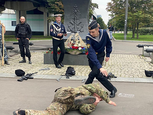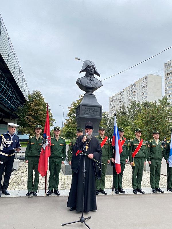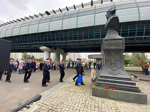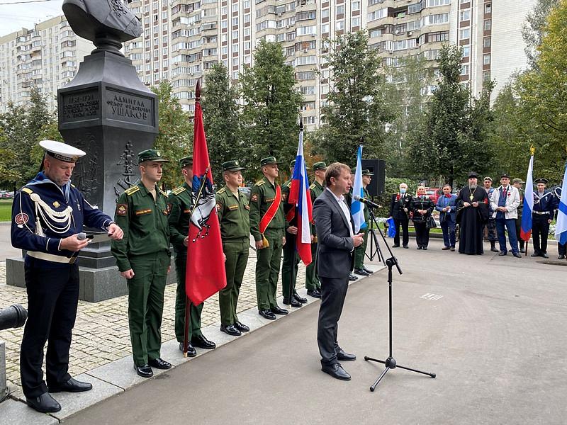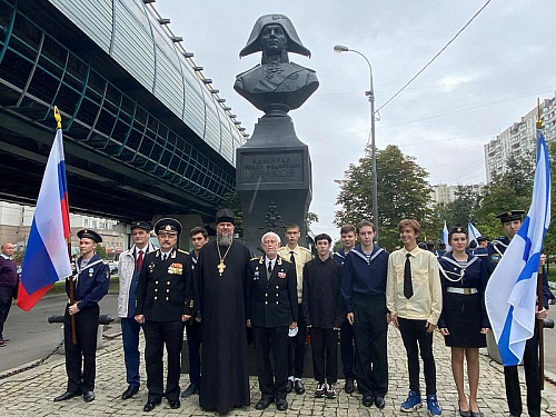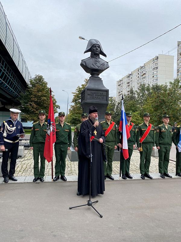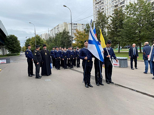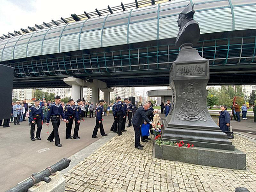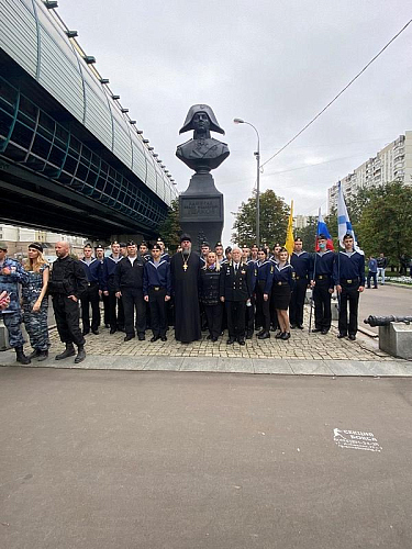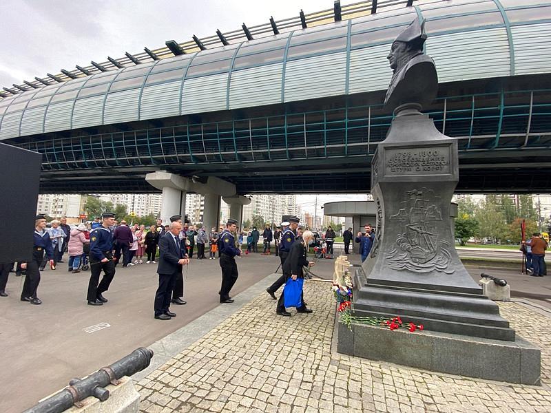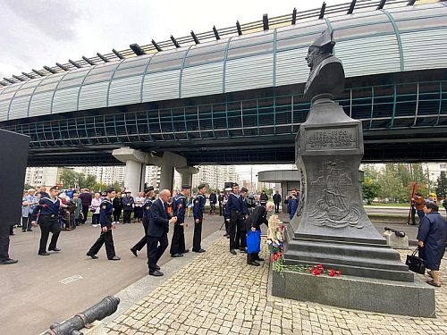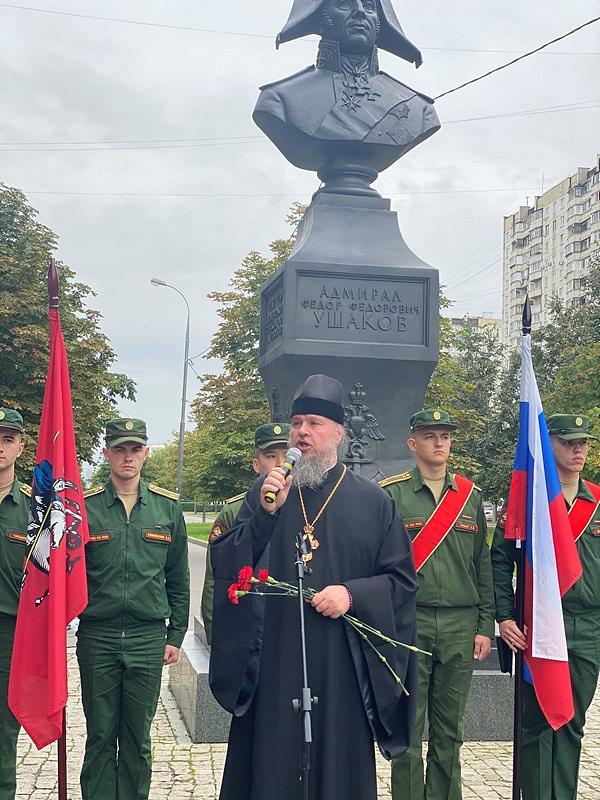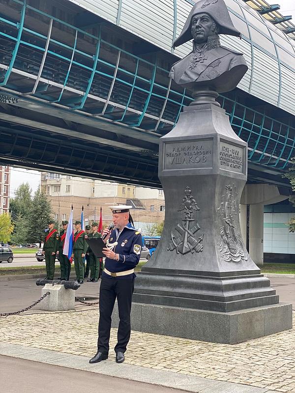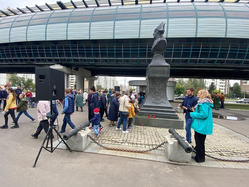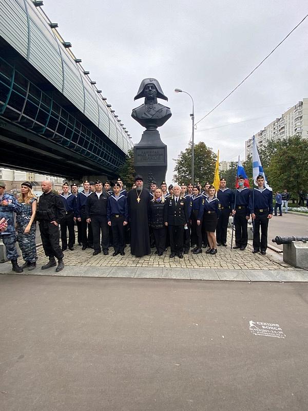 День воинской славы традиционно отмечается особенного широко, как праздник района Южное Бутово. У памятника Святому адмиралу выстроились отряды курсантов Государственной академии водного транспорта и кадетов-юнармейцев школ 1161 и 1883.