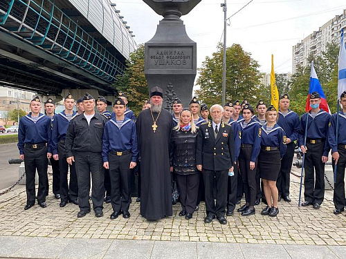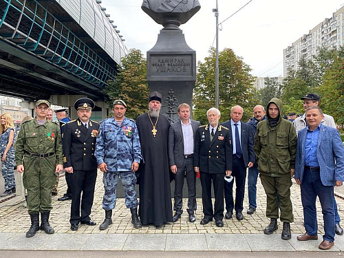 Все присутствующие возложили цветы к памятнику непобедимому адмиралу Флота Российского, святому праведному Феодору Ушакову.