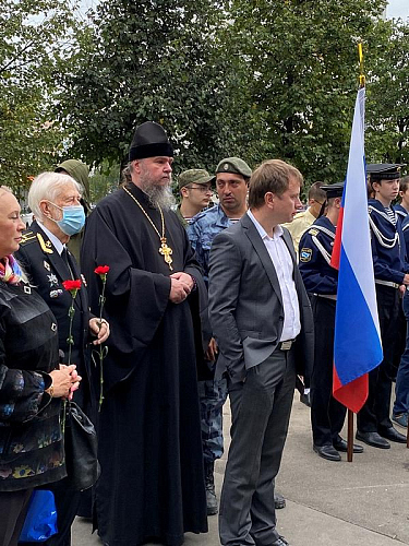 Далее выступил настоятель храма святого праведного воина Феодора Ушакова, заместитель председателя Совета по патриотической работе района, игумен Дамиан (Залетов). Настоятель воинского храма отметил, что эти дни особенные, поскольку Русская Православная Церковь, Российское воинство и флот отмечают 20-летие канонизации святого праведного воина Феодора Ушакова. Особая благодарность за организацию праздника была высказана настоятелем Главе Муниципального округа Павлу Викторовичу Голубцову и Совету депутатов Муниципального округа, а также Управе района Южное Бутово. Настоятель передал поздравление с праздником жителям района от лётчика-космонавта, Героя России, Романа Юрьевича Романенко и депутата Мосгордумы Людмилы Ивановны Гусевой.