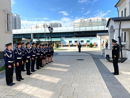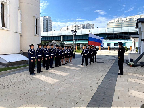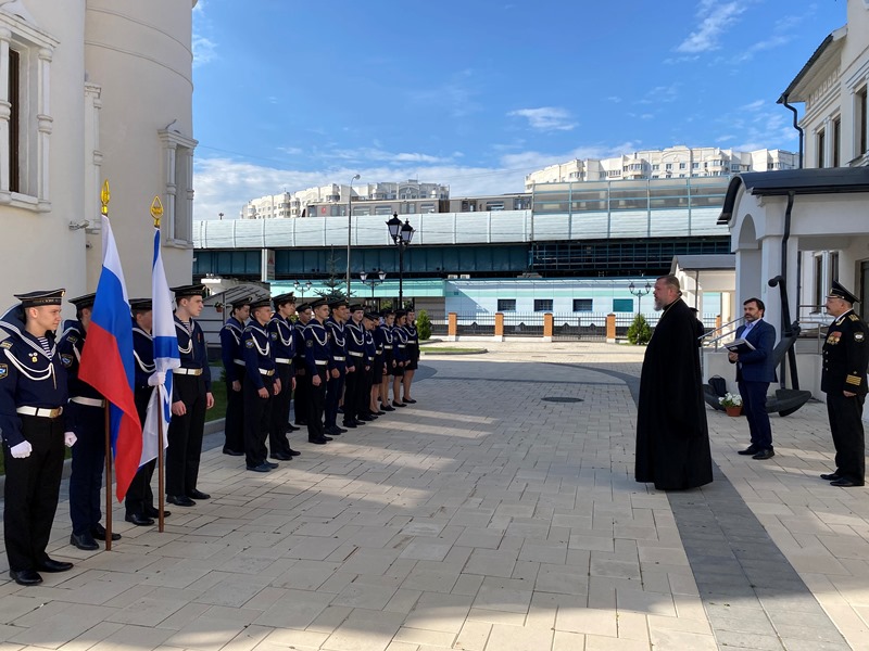Флаговая группа "Школа № 1161" достойно представили Юнармию ЮЗАО. Ребята, морские кадеты, бодро промаршировали около священных артефактов истории русского флота.