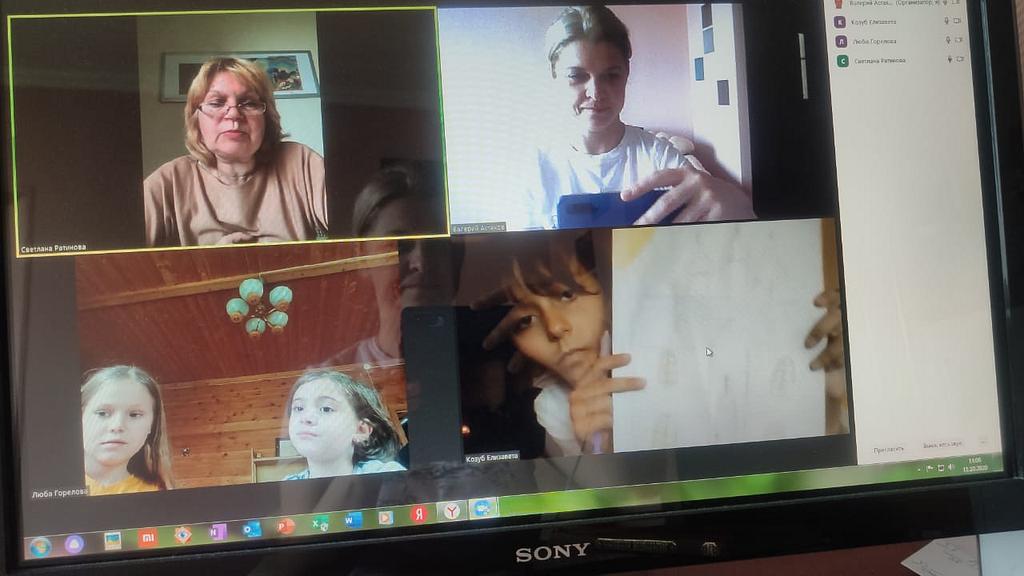 с 1 ноября, каждое воскресенье, педагоги Наталья Александровна Астахова (закон Божий), Анна Серафимовна Горелова (основы хорового и церковного пения) и Светлана Юрьевна Ратинова (кружок декоративно-прикладного творчества) проводят занятия, общаясь с ребятами дистанционно.