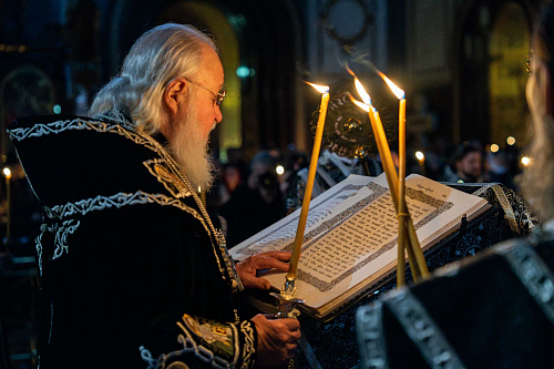 Вечером 9 апреля 2026 года, в канун пятницы Страстной седмицы, Святейший Патриарх Московский и всея Руси Кирилл в кафедральном соборном Храме Христа Спасителя г. Москвы совершил утреню Великого Пятка с чтением 12-ти Евангелий Святых Страстей Господа нашего Иисуса Христа.
