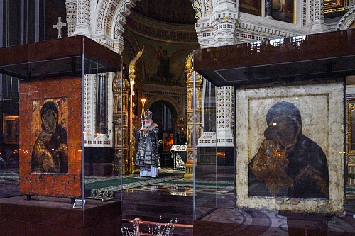 На сугубой ектении были вознесены особые прошения, Предстоятель Русской Православной Церкви прочитал молитву о Святой Руси.