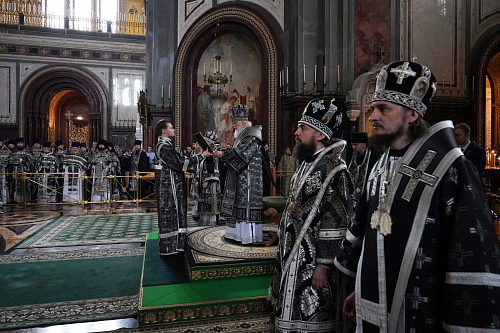 Богослужебные песнопения часов и изобразительных исполнил Камерный хор Храма Христа Спасителя (регент — С.С. Сидоренко), Литургии Преждеосвященных Даров — Патриарший хор Храма Христа Спасителя (регент — И.Б. Толкачев). Песнопение «Да исправится молитва моя» исполнил хор молодежного движения «Патриаршие добровольцы» под управлением Анны Голик.