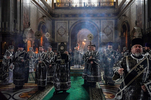 8 апреля 2026 года, в среду Страстной седмицы, Святейший Патриарх Московский и всея Руси Кирилл молился за уставными великопостными богослужениями в кафедральном соборном Храме Христа Спасителя в Москве. Затем Предстоятель Русской Православной Церкви совершил последнюю в этом году Литургию Преждеосвященных Даров.
