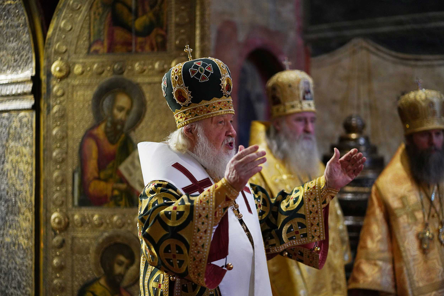 На сугубой ектении были вознесены особые прошения, Предстоятель Русской Церкви прочитал молитву о Святой Руси.