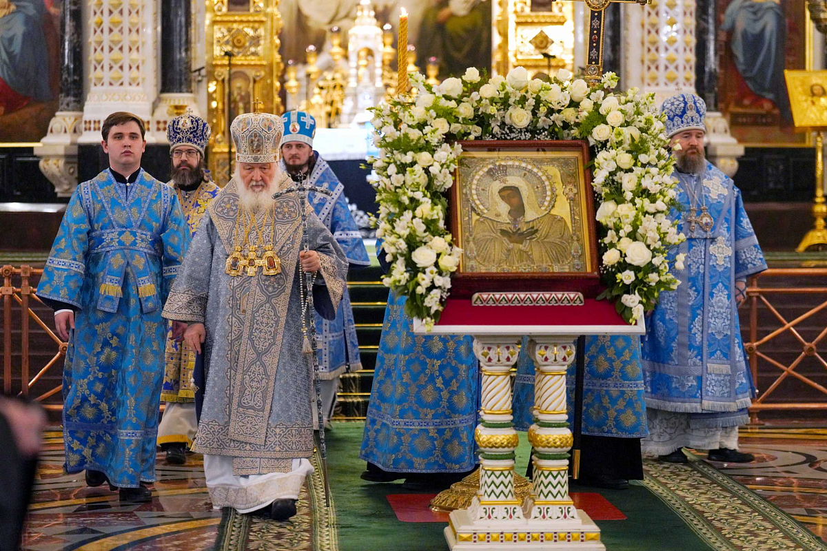 Сегодня по благословению Святейшего Патриарха Кирилла митрополит Воскресенский Григорий, управляющий делами Московской Патриархии, первый викарий Патриарха Московского и всея Руси по городу Москве, перевез чтимый образ в алтарь Храма Христа Спасителя.