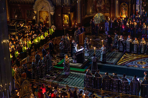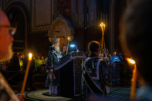 Вечером 10 апреля 2026 года, в канун Великой Субботы, Святейший Патриарх Московский и всея Руси Кирилл совершил утреню с чином погребения Господа нашего Иисуса Христа в кафедральном соборном Храме Христа Спасителя в Москве.