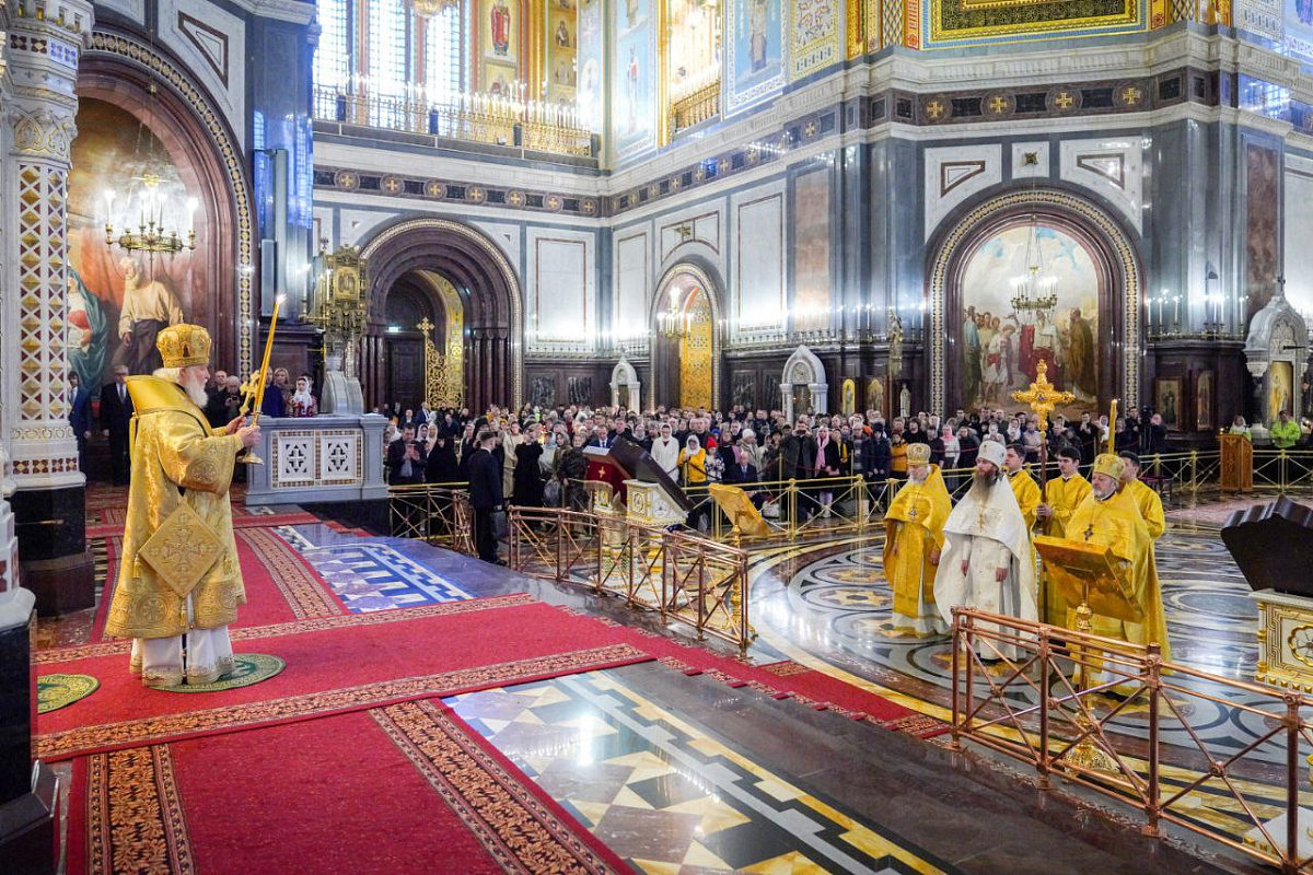 Богослужебные песнопения исполнил Патриарший хор Храма Христа Спасителя (регент — И.Б. Толкачев).