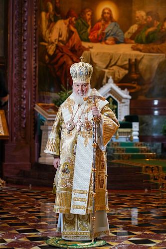 На сугубой ектении были вознесены особые прошения, Предстоятель Русской Церкви прочитал молитву о Святой Руси.