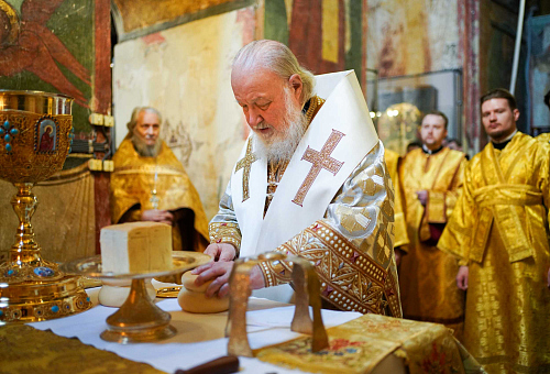 На сугубой ектении были вознесены особые прошения, Святейший Патриарх Кирилл прочитал молитву о Святой Руси.