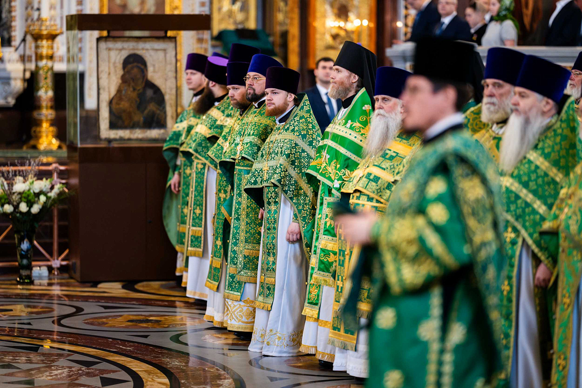 По прибытии в Храм Христа Спасителя перед началом богослужения Предстоятель Русской Православной Церкви поклонился чудотворным Владимирской и Донской иконам Божией Матери и честным мощам святителя Филарета, митрополита Московского.