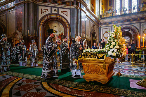 Богослужебные песнопения исполнил Патриарший хор Храма Христа Спасителя (регент — И.Б. Толкачев).