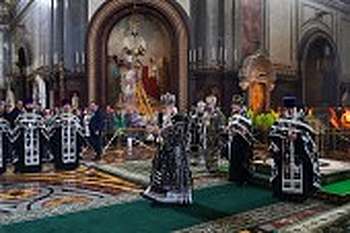 В Великую Среду Святейший Патриарх Кирилл совершил Литургию Преждеосвященных Даров в Храме Христа Спасителя