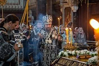 В канун Великой Субботы митрополит Воскресенский Григорий совершил утреню с чином погребения в Храме Христа Спасителя в Москве