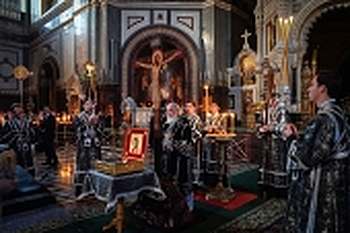 В канун Субботы Акафиста Святейший Патриарх Кирилл совершил утреню с чтением акафиста Пресвятой Богородице в Храме Христа Спасителя