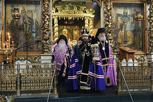 Божественная Литургия в Надвратном храме Святого мученика Андрея Стратилата Андреевского ставропигиального мужского монастыря