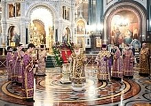 В канун Недели Крестопоклонной Святейший Патриарх Кирилл совершил всенощное бдение в Храме Христа Спасителя